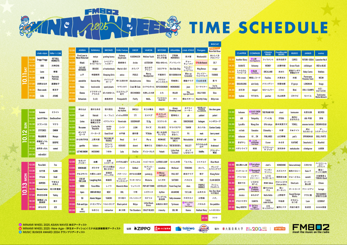会場 ANIMA / AtlantiQs / BEYOND / BIGCAT / BRONZE / CLAPPER / club JOULE / club vijon / CONPASS / DROP / FANJ twice / FootRock&BEERS / hills パン工場 / JANUS / OSAKA MUSE / OSAKA RUIDO / Pangea / soma / SUNHALL / VARON / なんばHatch(11日・12日のみ)