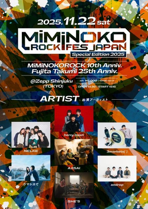 MiMiNOKOROCK 10th Anniv & Fujita Takumi 25th Anniv 「MiMiNOKOROCK Special Edition 2025」日程 11月22日(土)